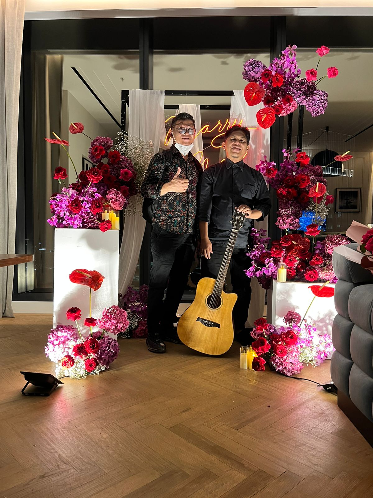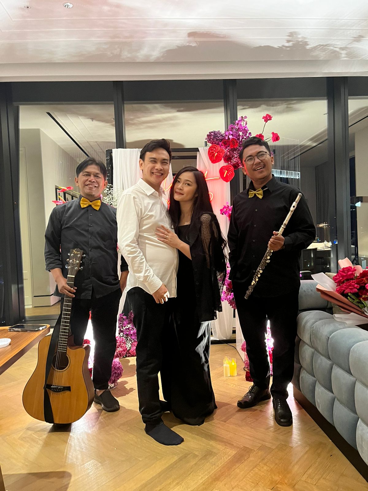 KISAH ROMANTIS DUA SEJOLI – Marry Me The Langham Jakarta di iringi jasa pemain gitar dan pemain Flute (Pemain Saxophone)
